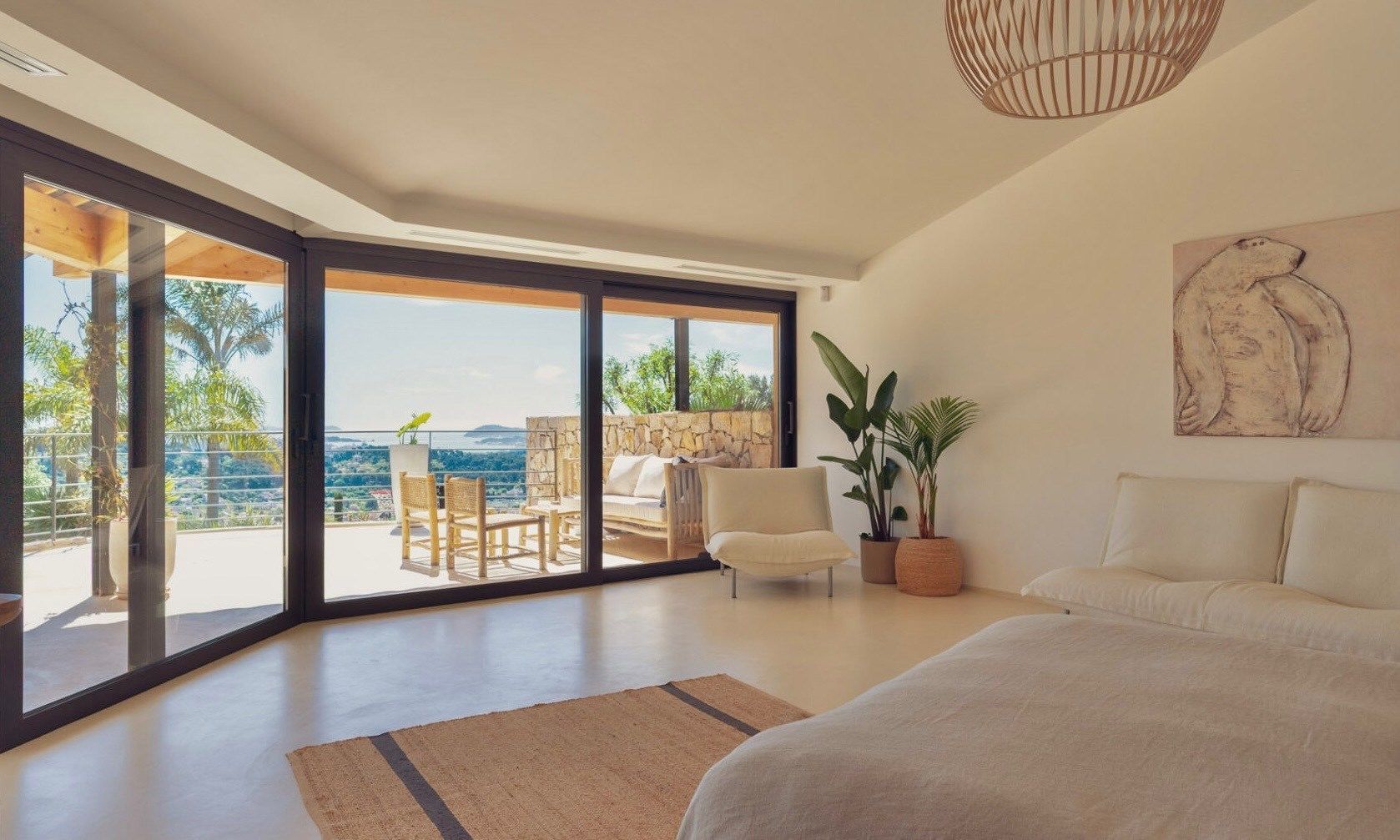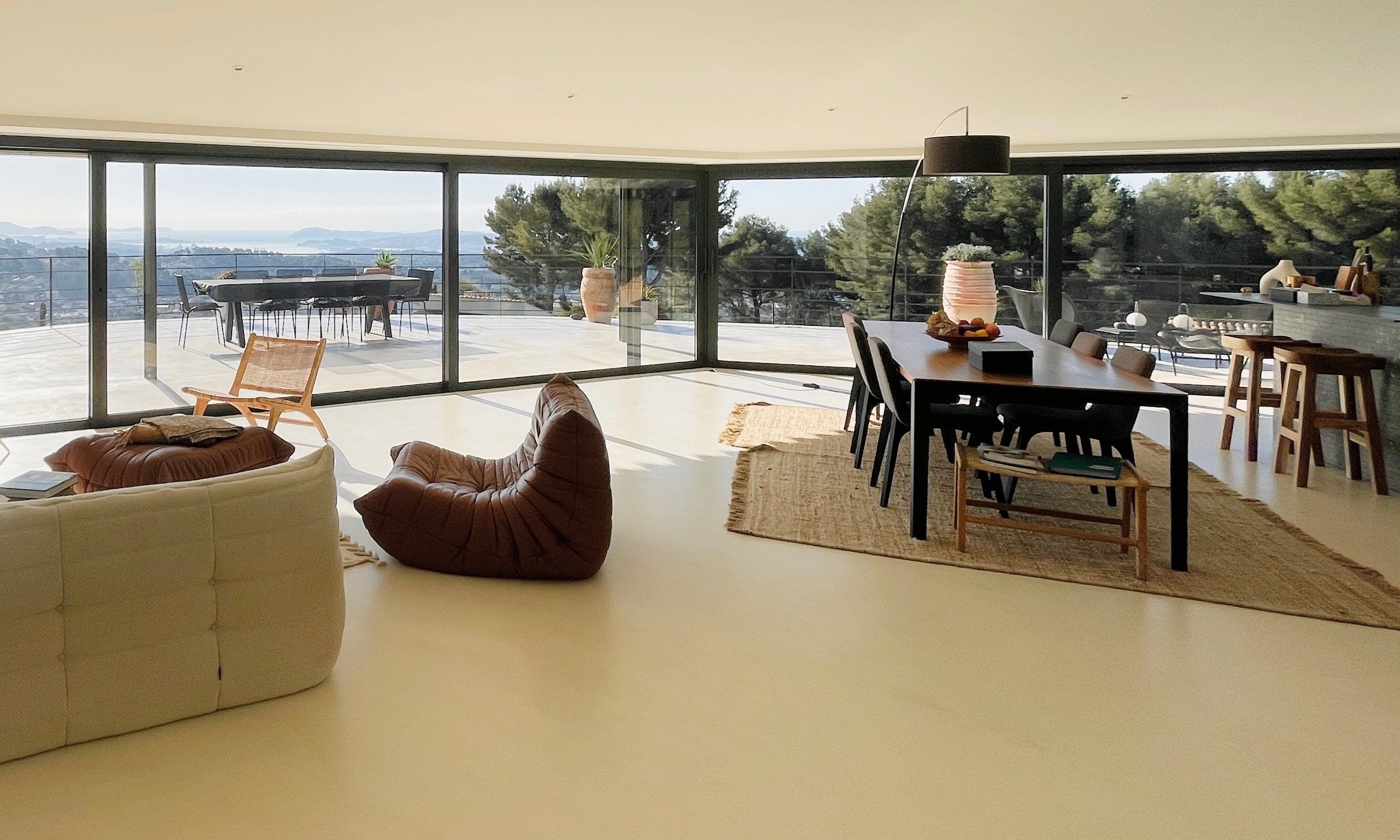 Just 15 minutes from the port of Sanary-sur-Mer. Situated in a dominant position on the hills of Ollioules, this exceptional villa of approximately 300m² designed by a renowned architect offers a breathtaking view of the surrounding nature and the sea.