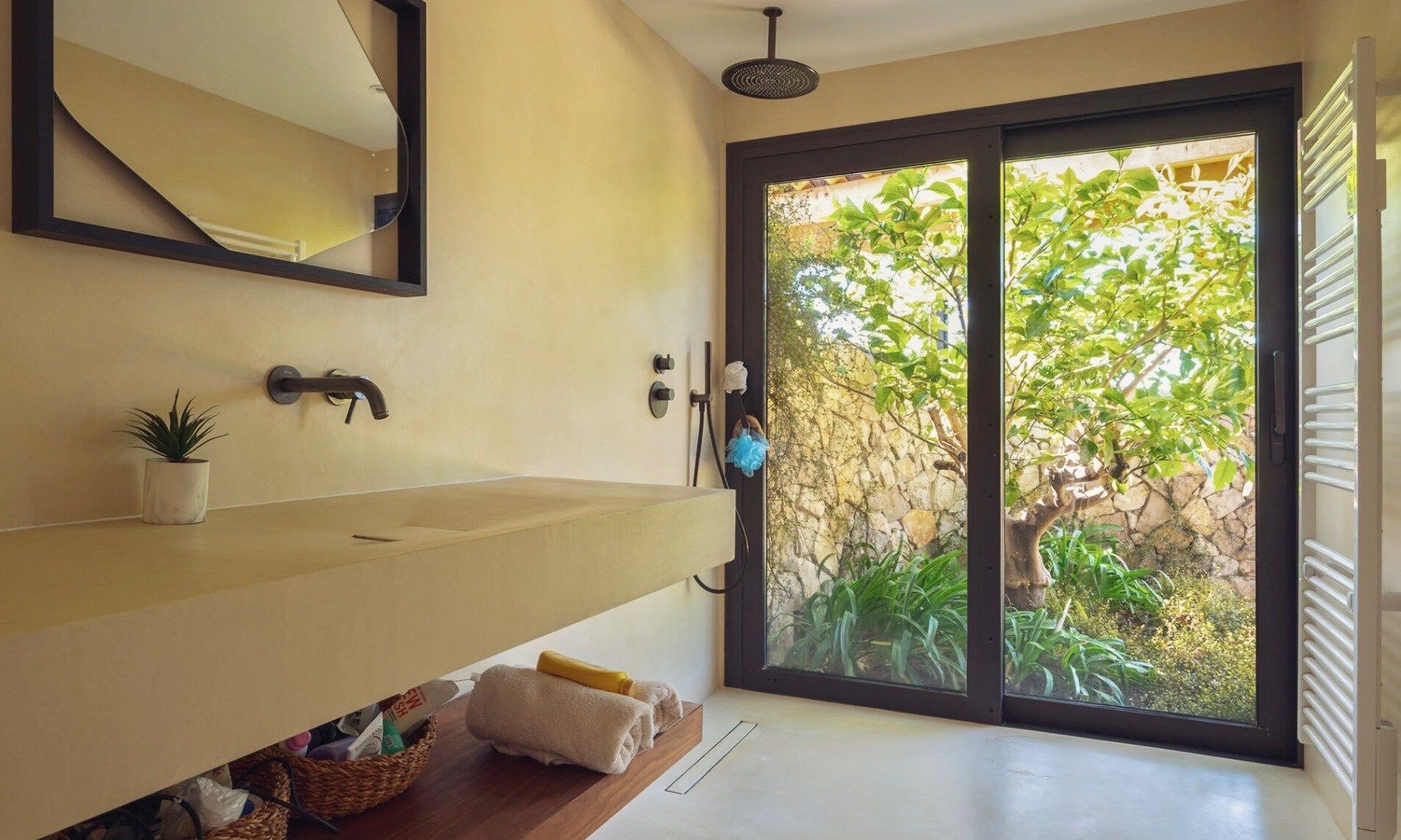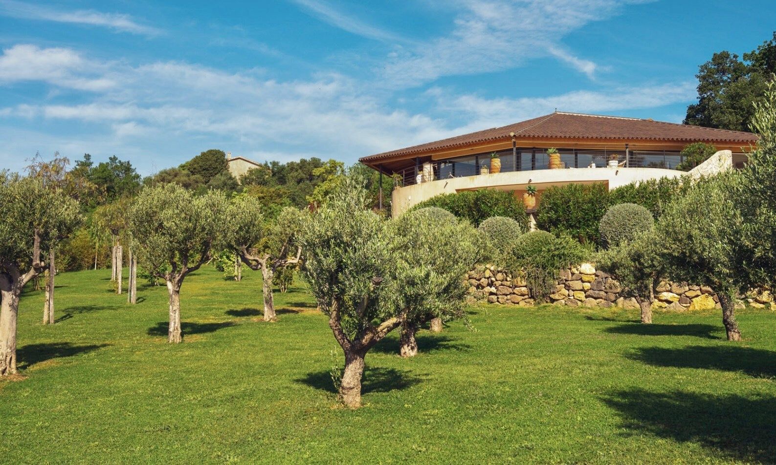 Outdoors, the infinity pool blends harmoniously into a 6,400m² landscaped garden with fruit and olive trees, fed by the Canal de Provence.
