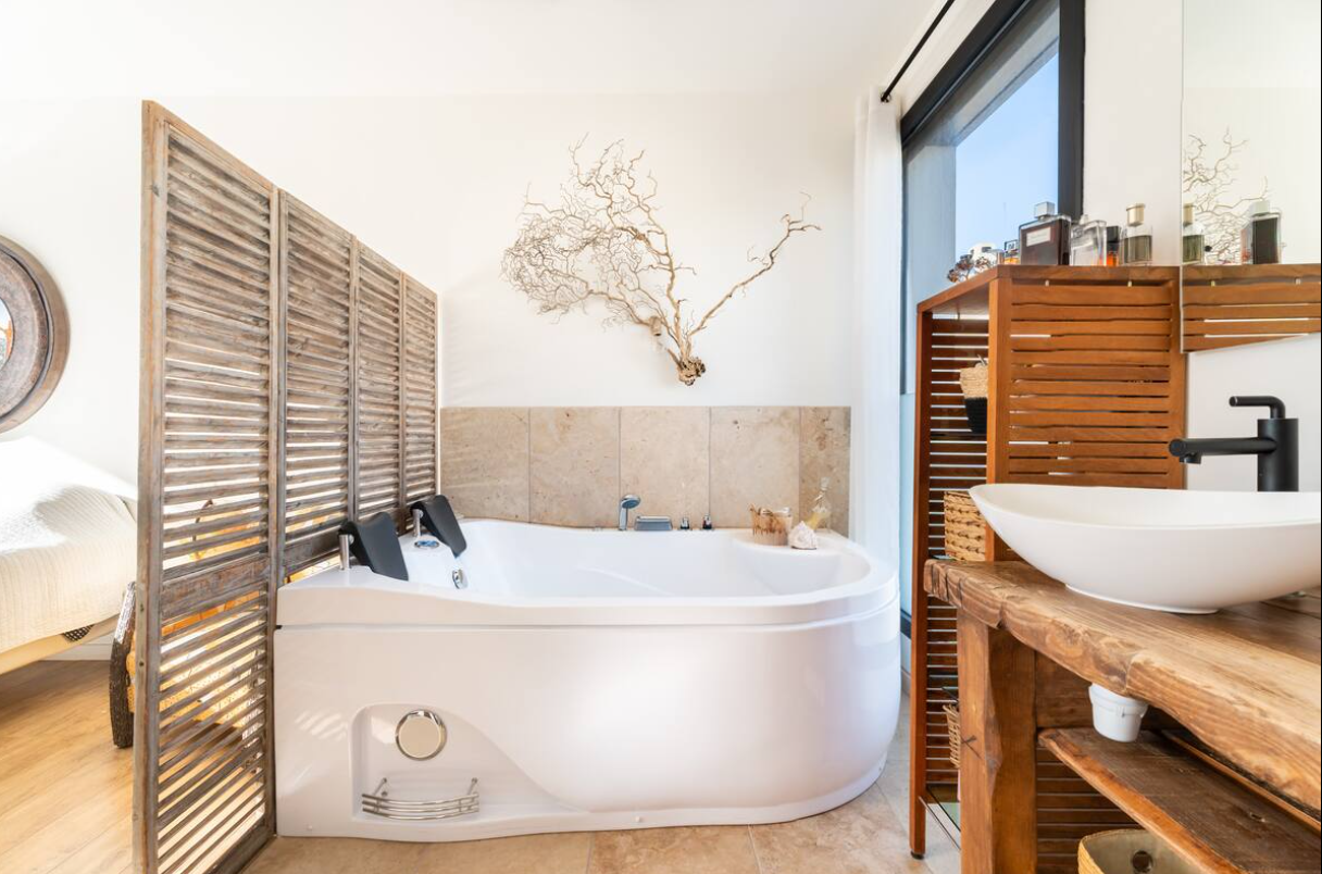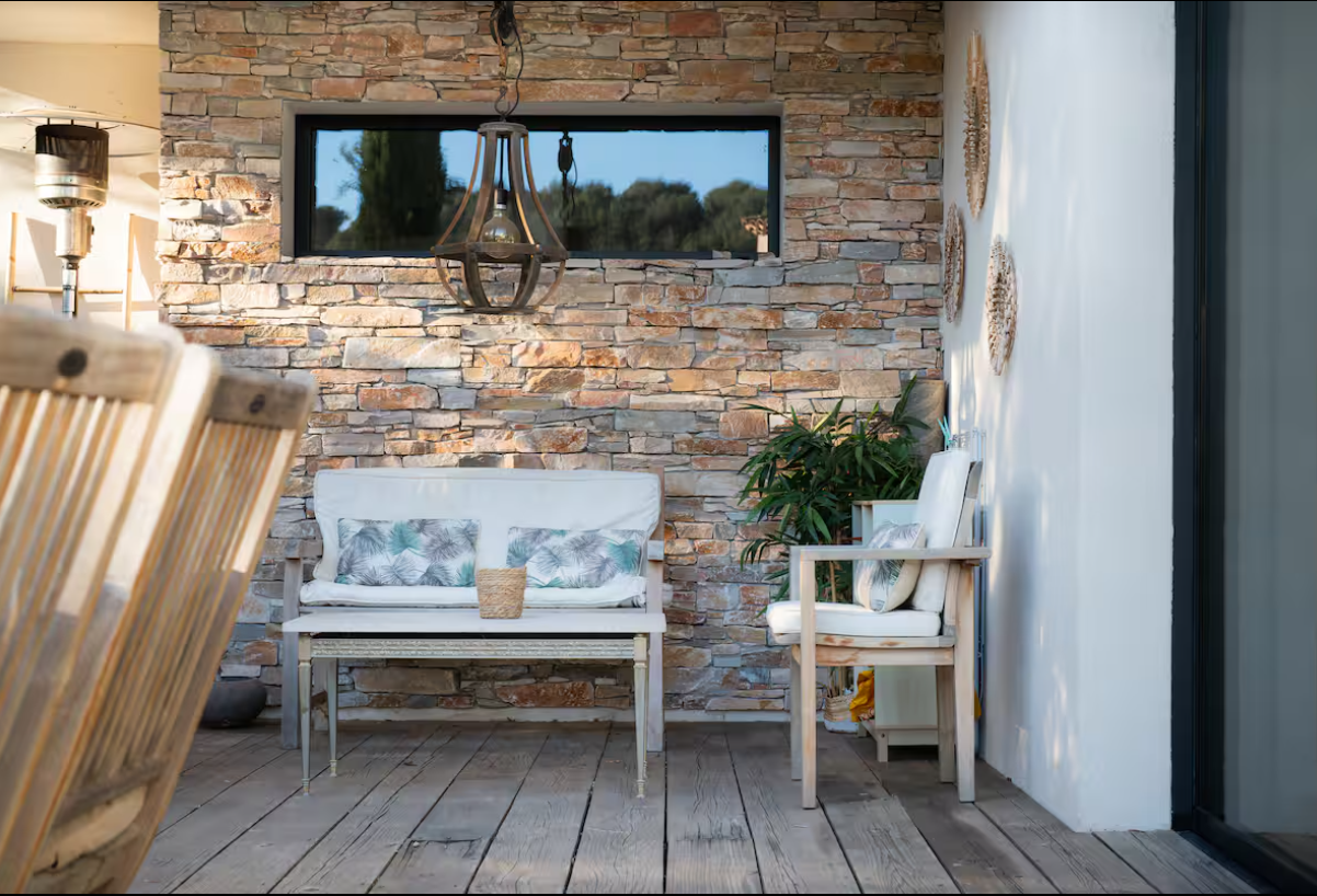 The main house offers five bedrooms, including a sumptuous 40 m² master suite with a private terrace. From this privileged space, you will enjoy a glimpse of the sea and a soothing view of the surrounding vineyards. Every detail has been carefully considered to provide comfort, privacy, and well-being every day.