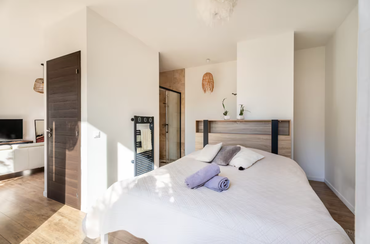 From the entrance, the tone is set with a vast 60 m² living space bathed in light, offering a warm and friendly atmosphere, ideal for entertaining or sharing family moments. The open-plan kitchen blends perfectly into this space, combining aesthetics and functionality.