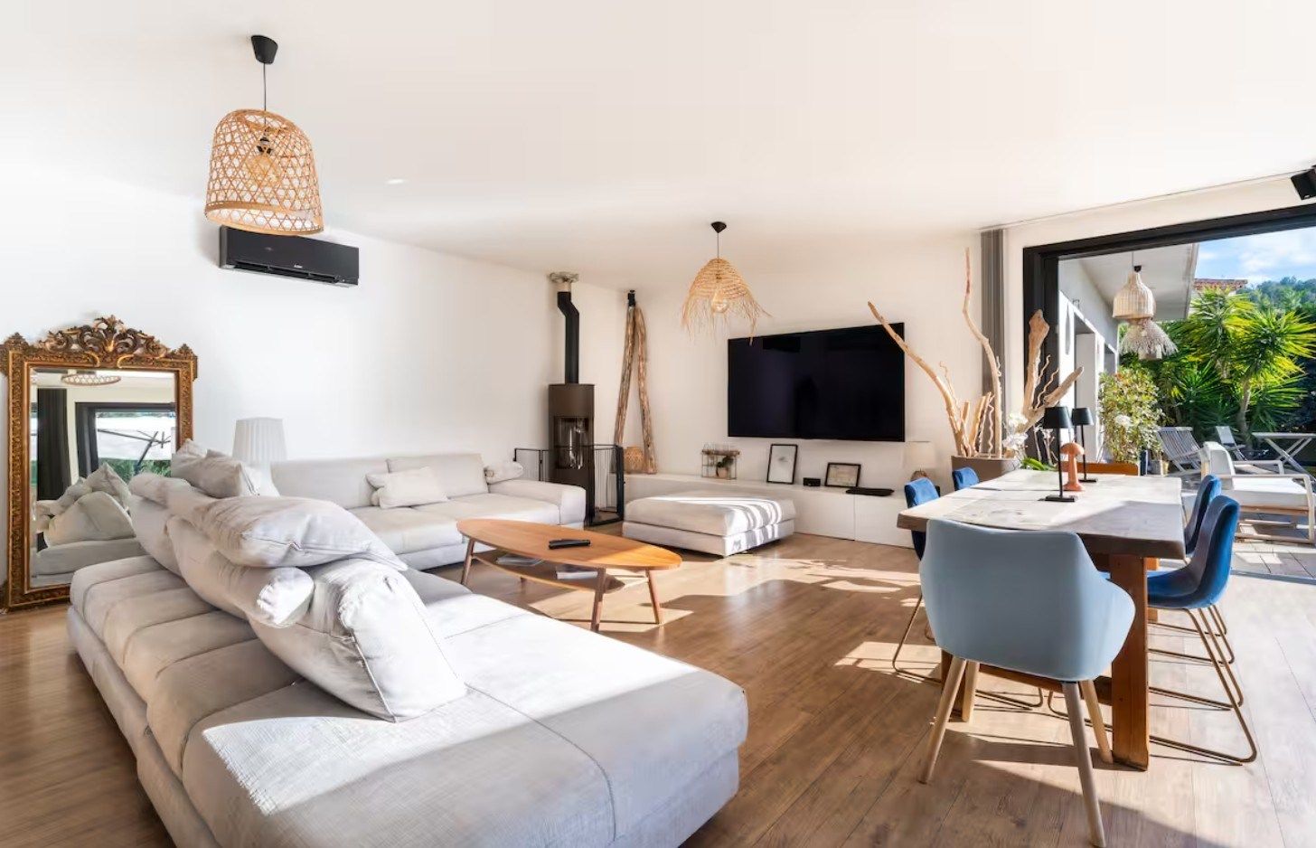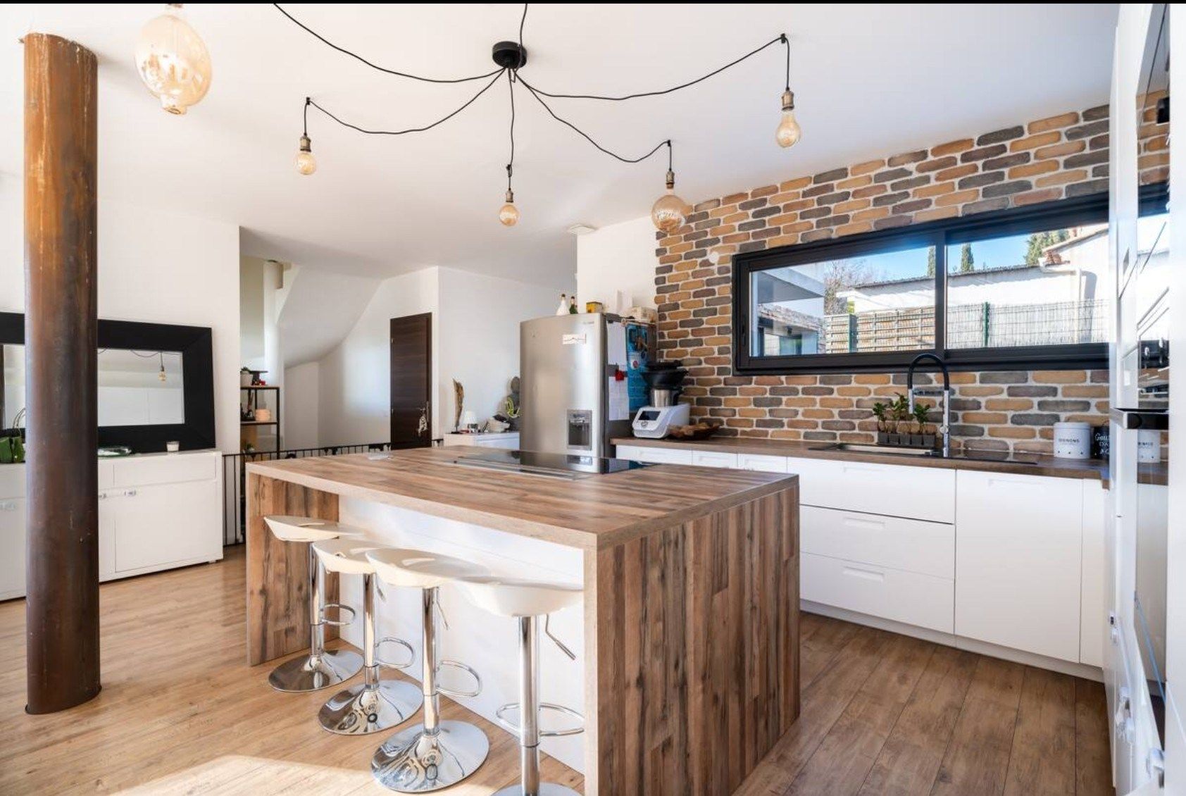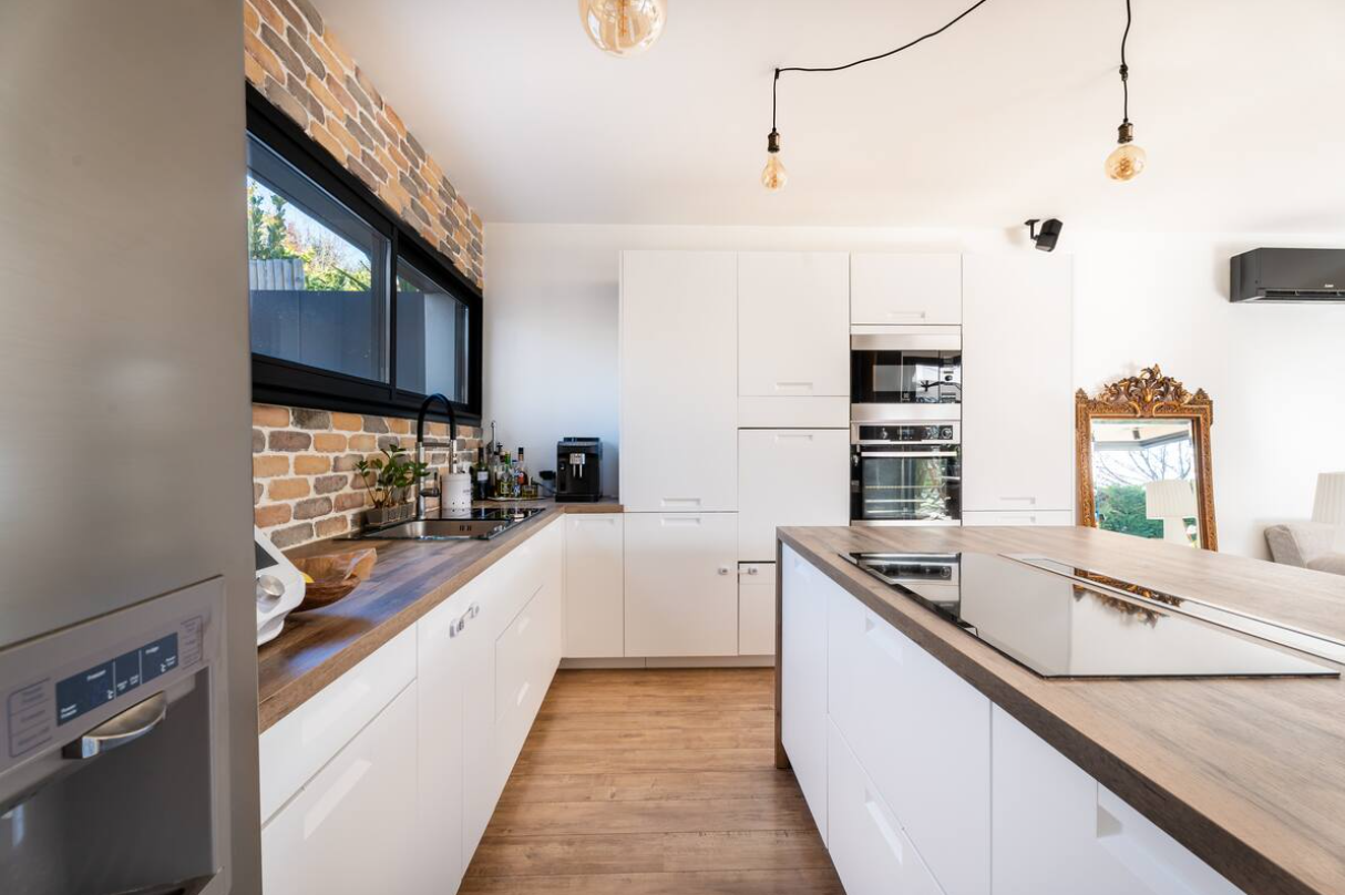 From the entrance, the tone is set with a vast 60 m² living space bathed in light, offering a warm and friendly atmosphere, ideal for entertaining or sharing family moments. The open-plan kitchen blends perfectly into this space, combining aesthetics and functionality.