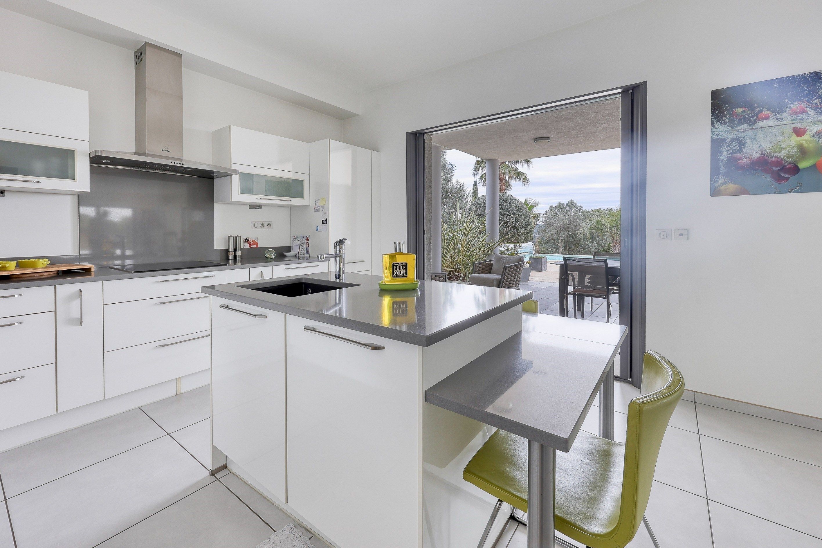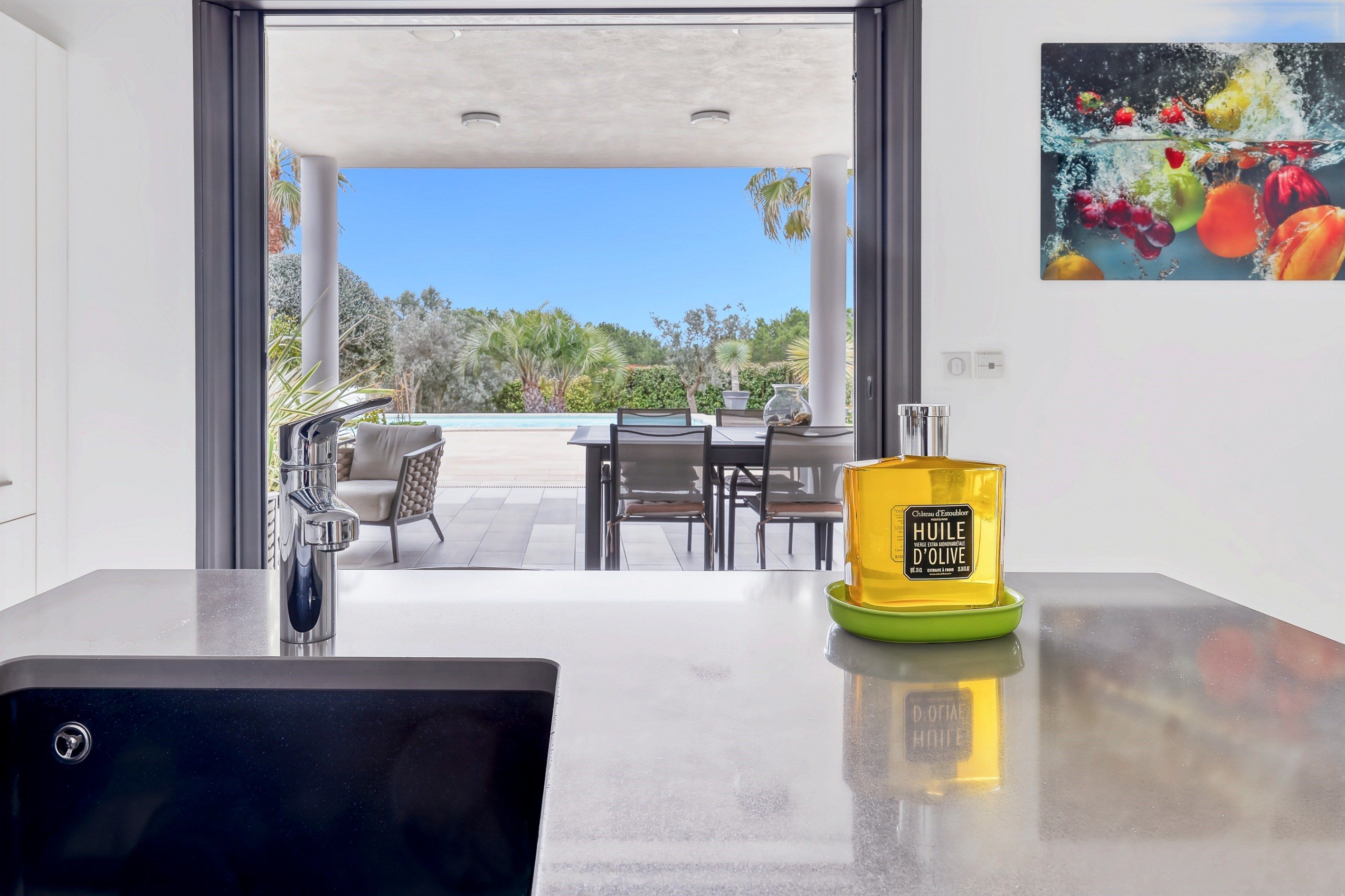 Bâtie avec des matériaux nobles et agrémentée d’une décoration sobre et élégante, cette villa allie prestations haut de gamme et confort absolu.