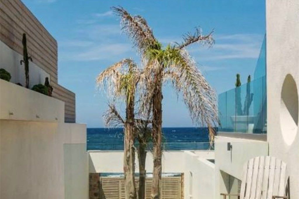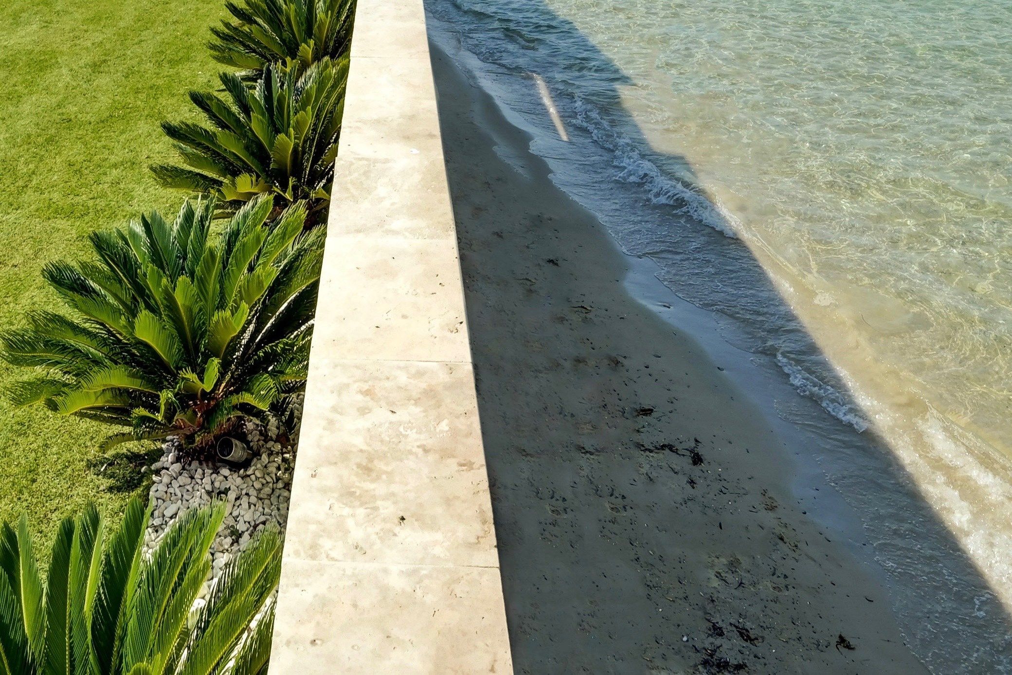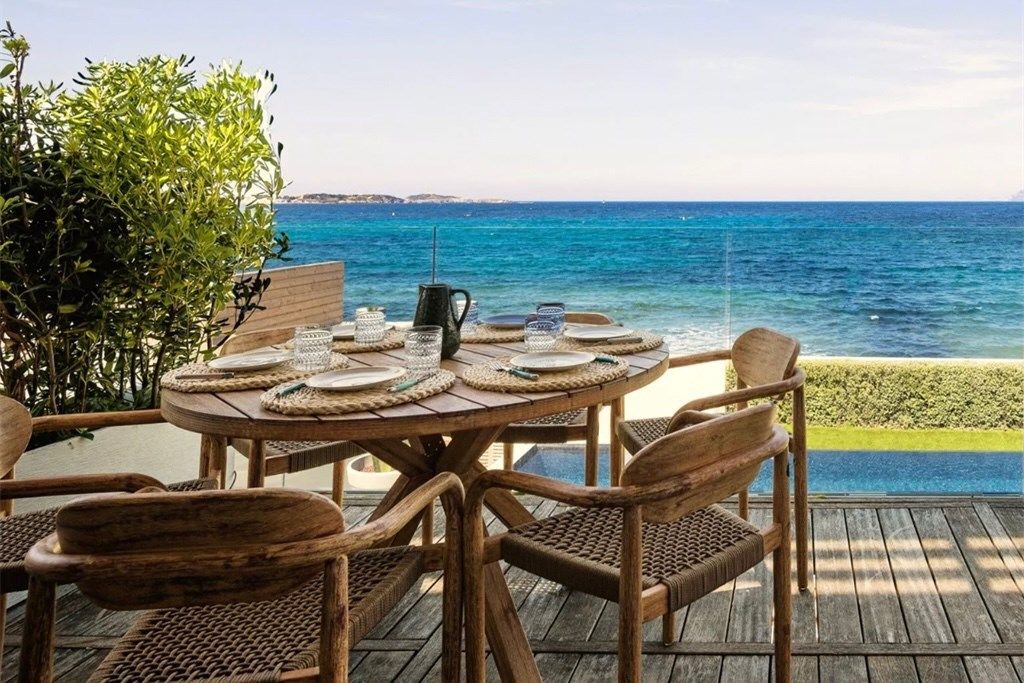 Dès le seuil franchi, la lumière s’impose. Le vaste espace de réception, largement ouvert par de généreuses baies vitrées, prolonge naturellement l’intérieur vers la mer, offrant un spectacle permanent sur l’horizon.
