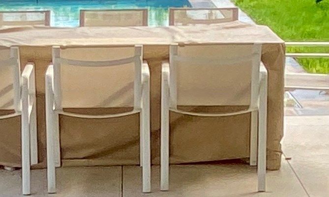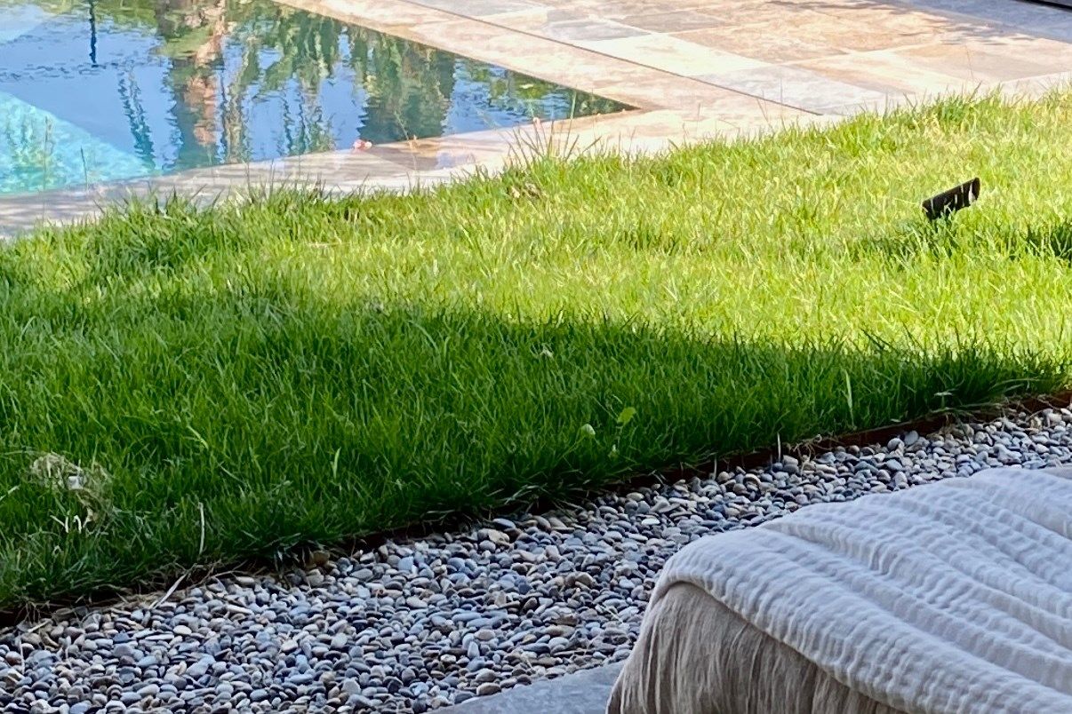 À l’extérieur, un espace soigneusement paysager entoure la piscine en pierre naturelle, bordée de terrasses ombragées par une pergola bioclimatique. Un cadre confidentiel, préservé, où chaque journée prend des airs de vacances dans l’un des secteurs les plus prisés de Sainte-Maxime.