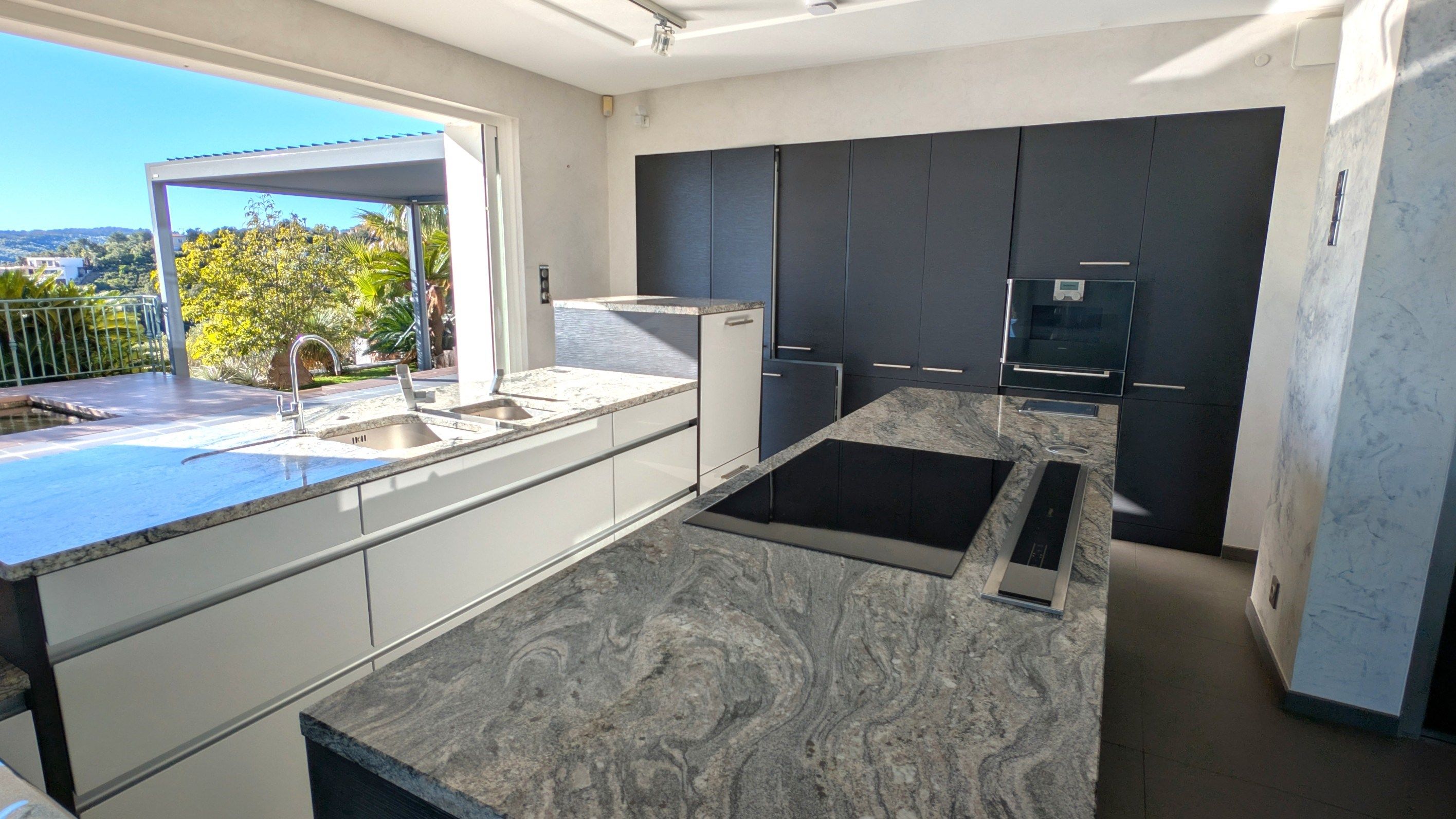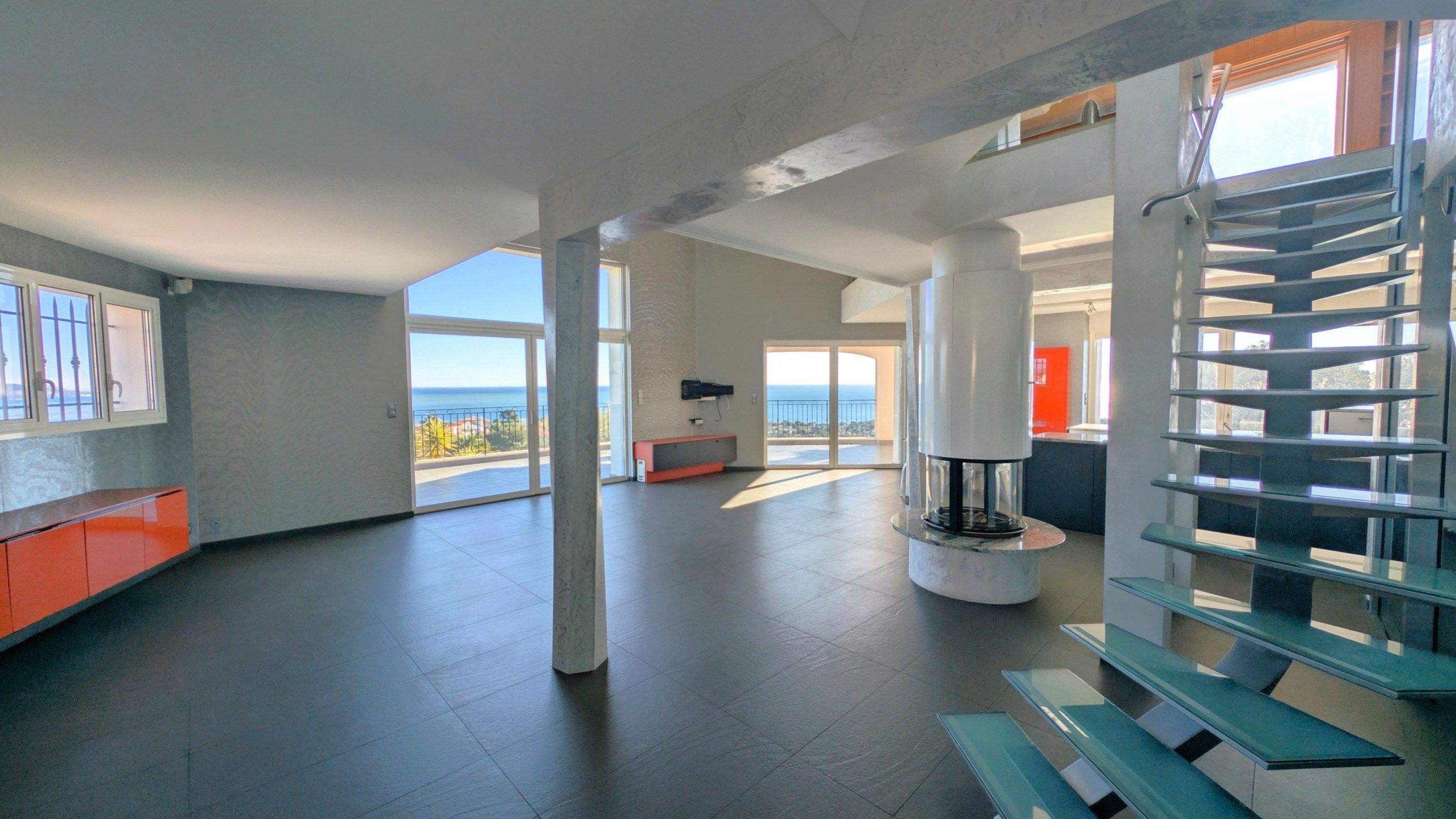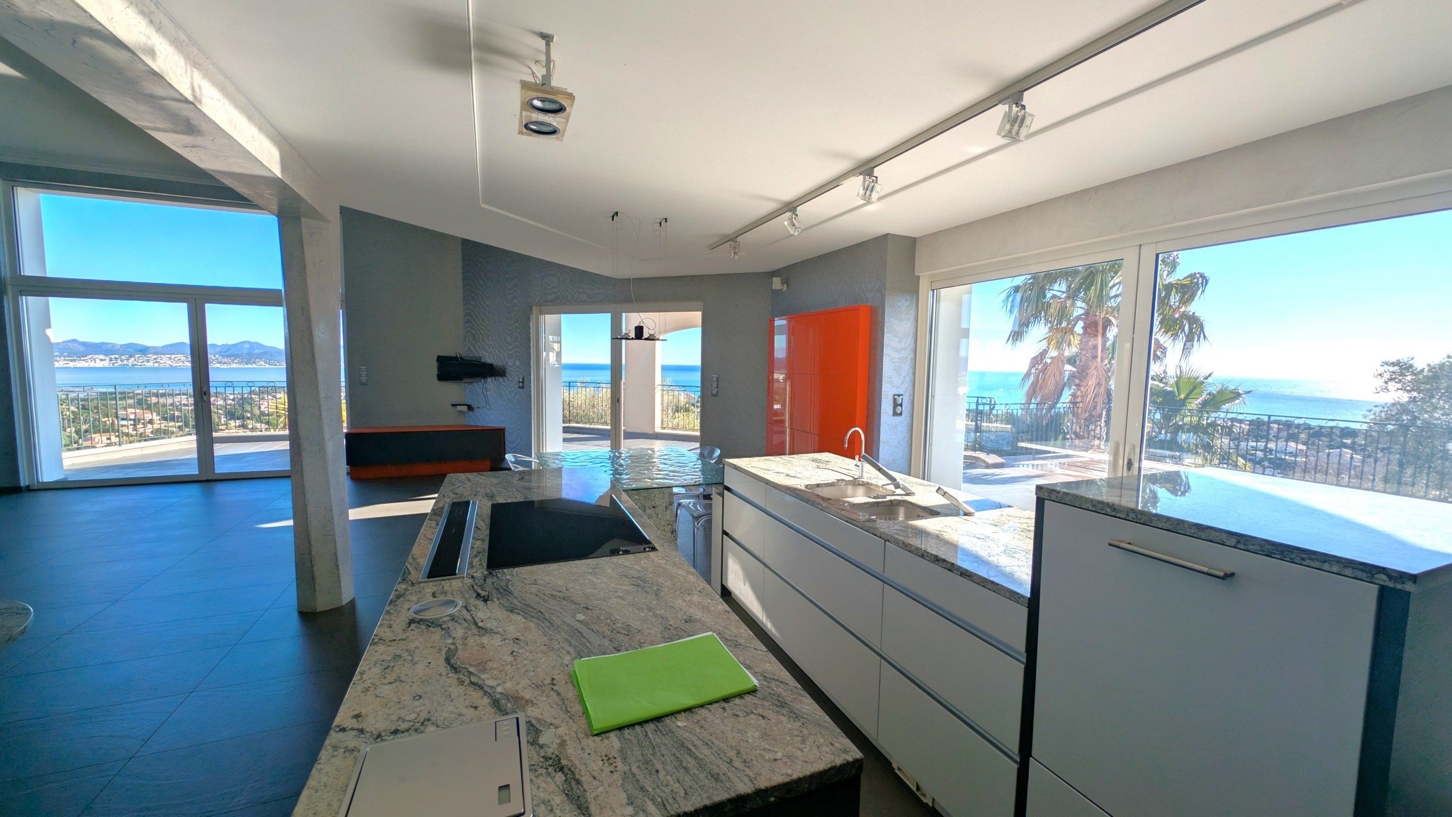 La villa s'organise autour d'un vaste espace de vie de 74 m?, comprenant un séjour lumineux avec cheminée centrale et une cuisine ouverte haut de gamme Gaggenau, le tout s'ouvrant sur une belle terrasse couverte, parfaite pour les moments de convivialité face à la mer.